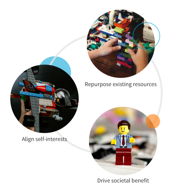 Repurpose existing resources from ALL three sectors. Unlock new value and multiply the impact of existing resources. This approach opens the door to fundamentally new business models and accelerates progress.